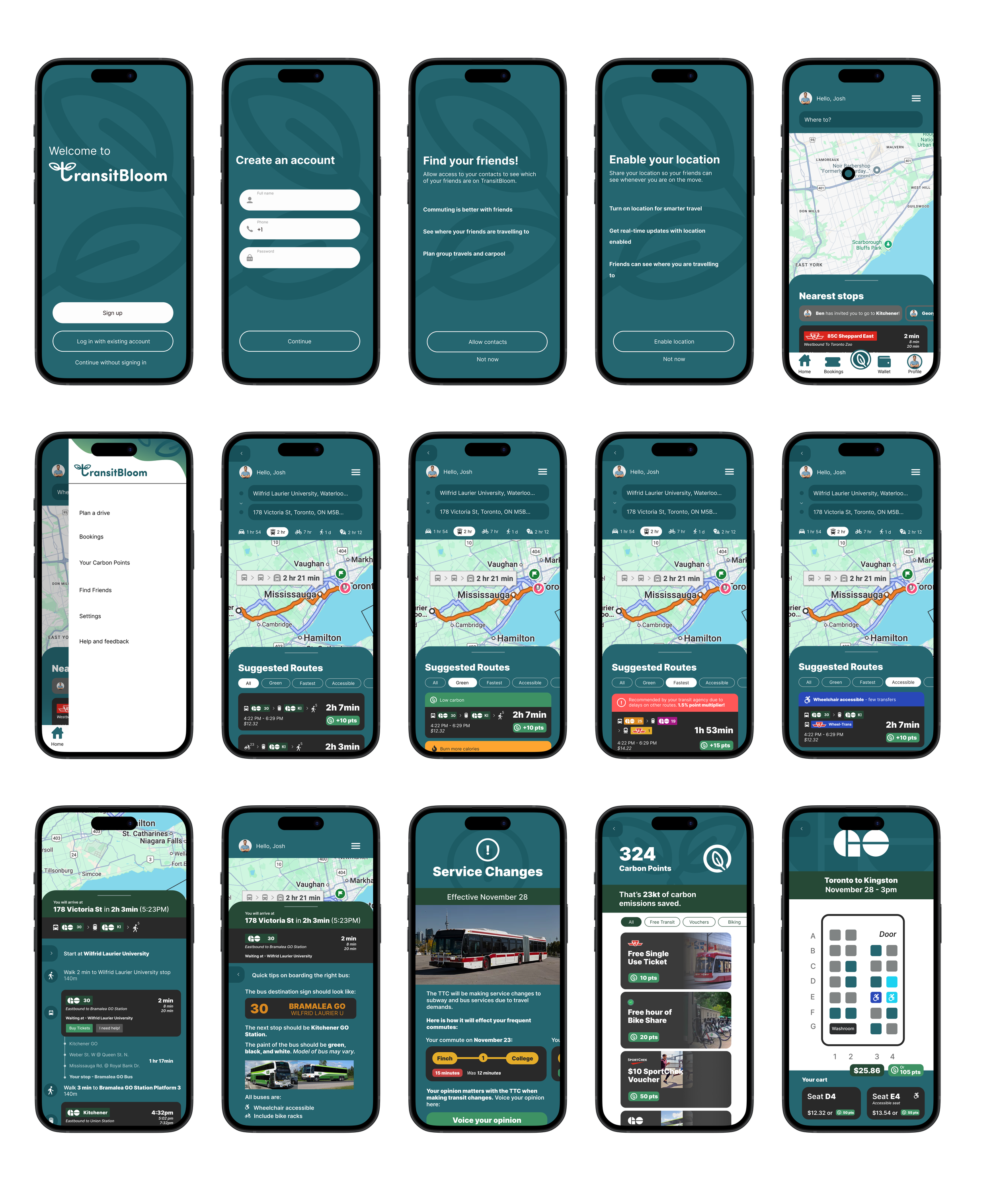 TransitBloom is a mobile app concept that helps commuters plan efficient and sustainable routes by using intuitive navigation, inclusive design, and rewards that make eco-friendly choices feel practical and achievable.