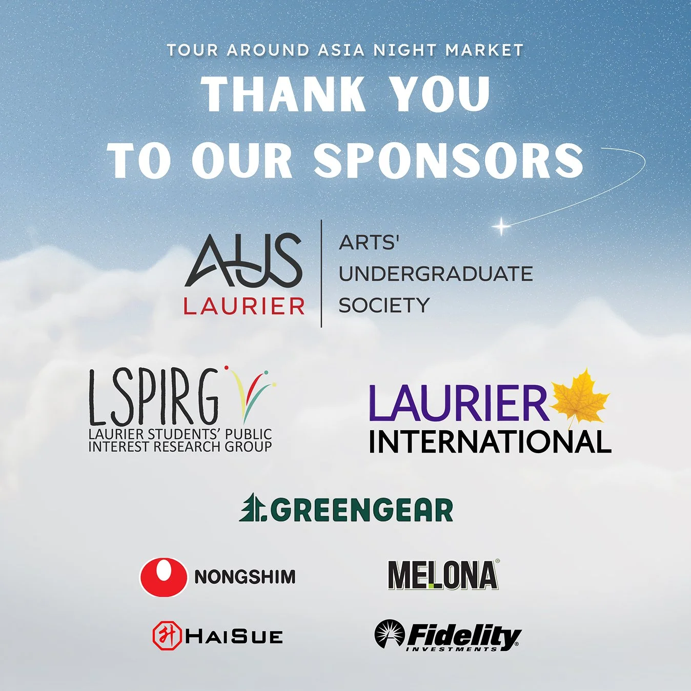 Partnered with 3 Laurier clubs to develop a unified "Tour Around Asia" travel theme, leading creative direction. Created a vibrant blue colour scheme with grainy textures and cloud motifs for a modern, inclusive look. Produced 13 on-brand graphics/videos using consistent typography and travel-inspired elements.